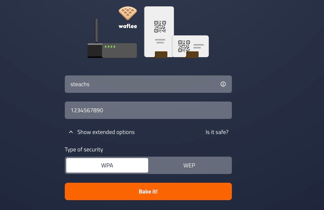 網站:https://waflee.app/進入網站後直接輸入你的網路 SSID 及連線密碼,就可以產生。