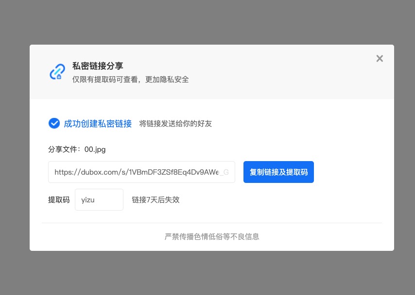 上傳的檔案可以設定分享期限,沒有永久這個選項外,基本上有效期就是 1、7 跟 30 天可以選擇。