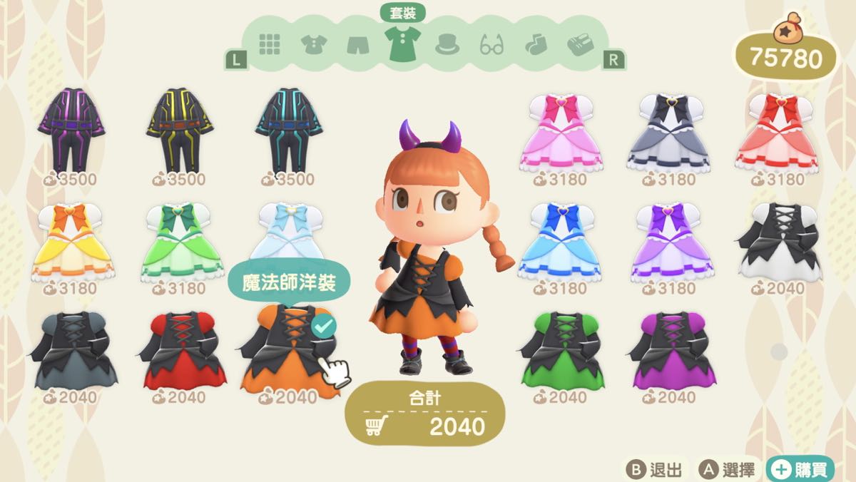 在 ABLE SISTERS 服飾店中會有魔女和喪屍風格的相關服裝,森友們也能在「Nook 哩數兌換」裡獲得臉部彩繪和彩色隱形眼鏡等,替自己變身成充滿萬聖節氣氛的扮裝!