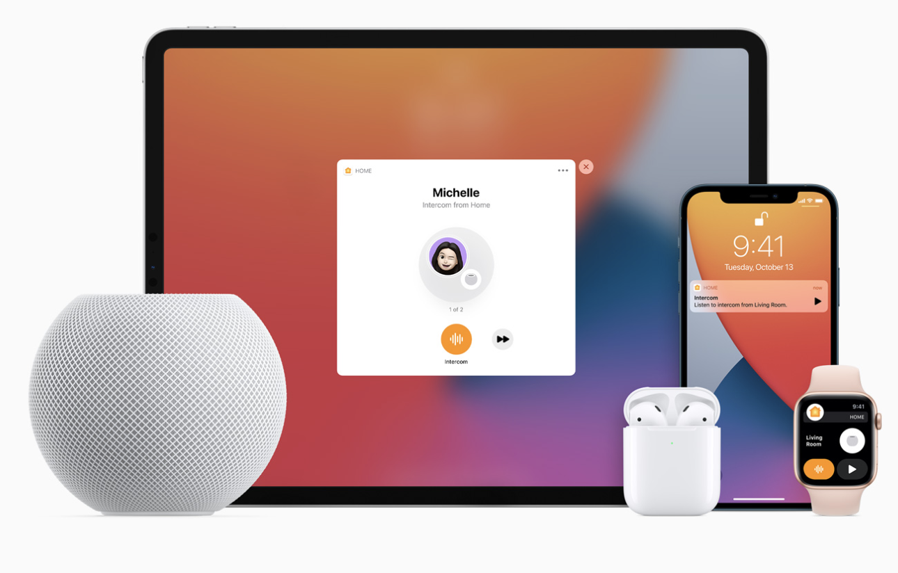 HomePod mini 還有新增「廣播」功能,就是如果家中成員在另一個房間,我們就能從一部 HomePod 透過「廣播」來傳送訊息到另一部,讓指定的 HomePod 揚聲器自動播放他們的聲音。而且「廣播」功能還適用於 iPhone、iPad、Apple Watch、AirPods 和 CarPlay,因此每一位家人不管是在回家的路上、客廳、房間等,都能彼此透過「廣播」來接收通知及發送訊息,擁有更多的交流。