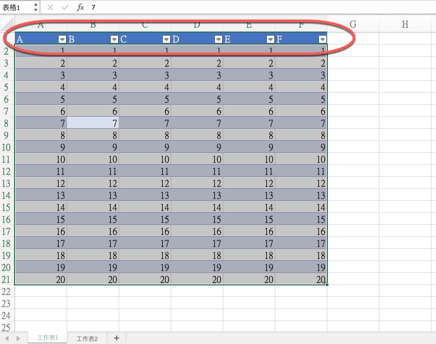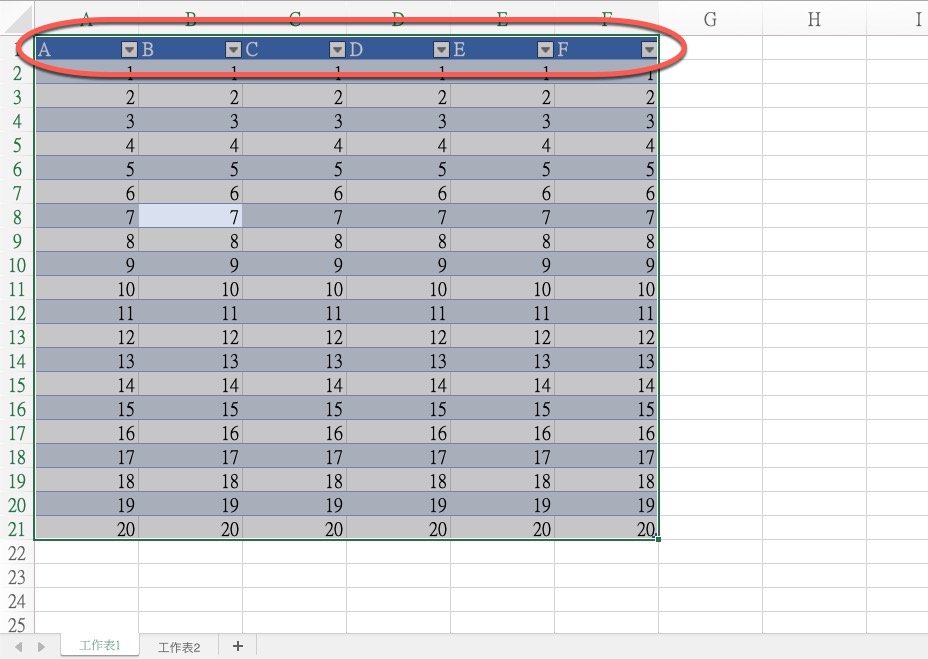再第二次 Ctrl + A 後就會將標題一併選取,再按下第三次就會選取整個資料表。