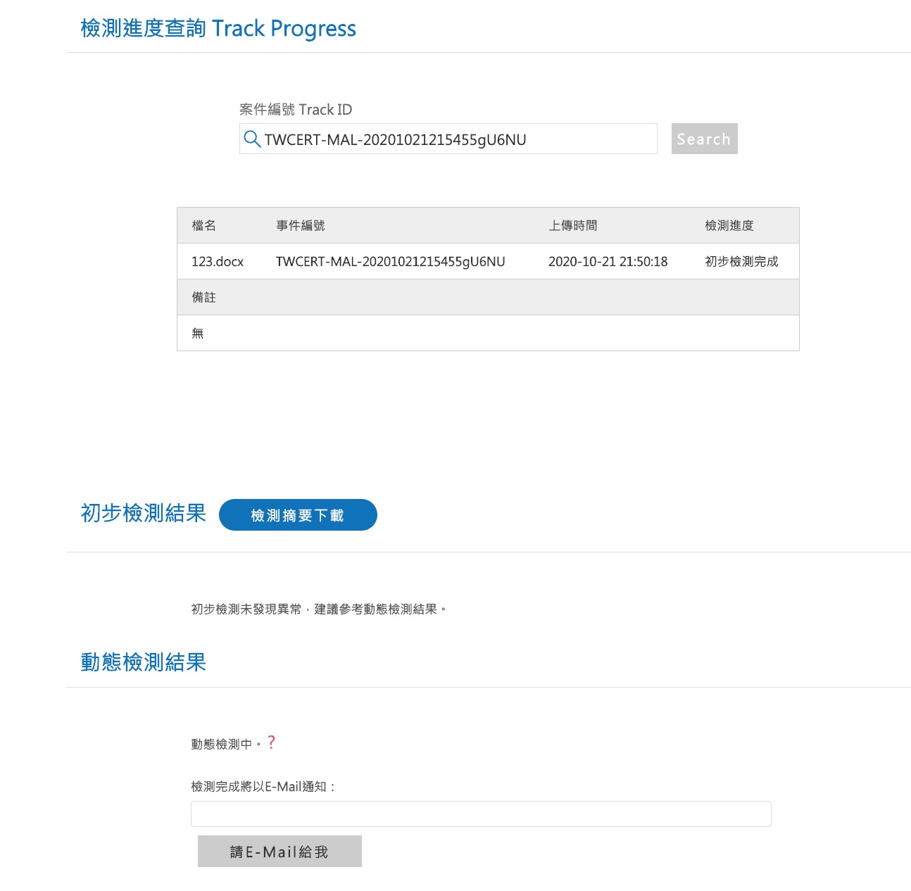 第一時間送出後,會先有初步的檢測,再來會需要花點時間做深度分析。