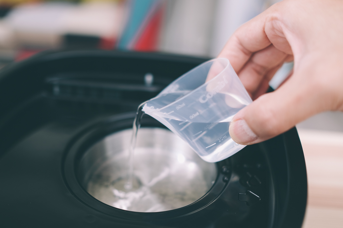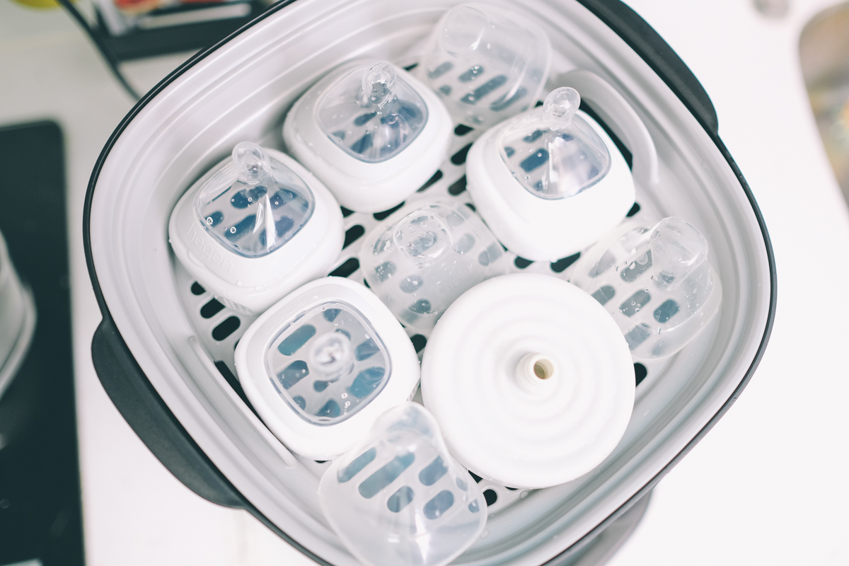 每次倒入一個滿水量杯大約可以蒸 7 分鐘左右(80ml),也差不多就是我們一般消毒的時間,或者像加熱副食品,其實用傳統電鍋也差不多會是用 7-8 分鐘。