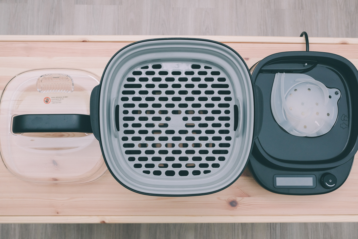 下方的氣動引流扇用到自動模式跟烘乾模式再安裝即可,平常可以不使用,不過阿湯自己試了一下,就算是在溫食模式下,不拆下其實也不會影響,所以懶的收納就把他一直放著也是可以的。
