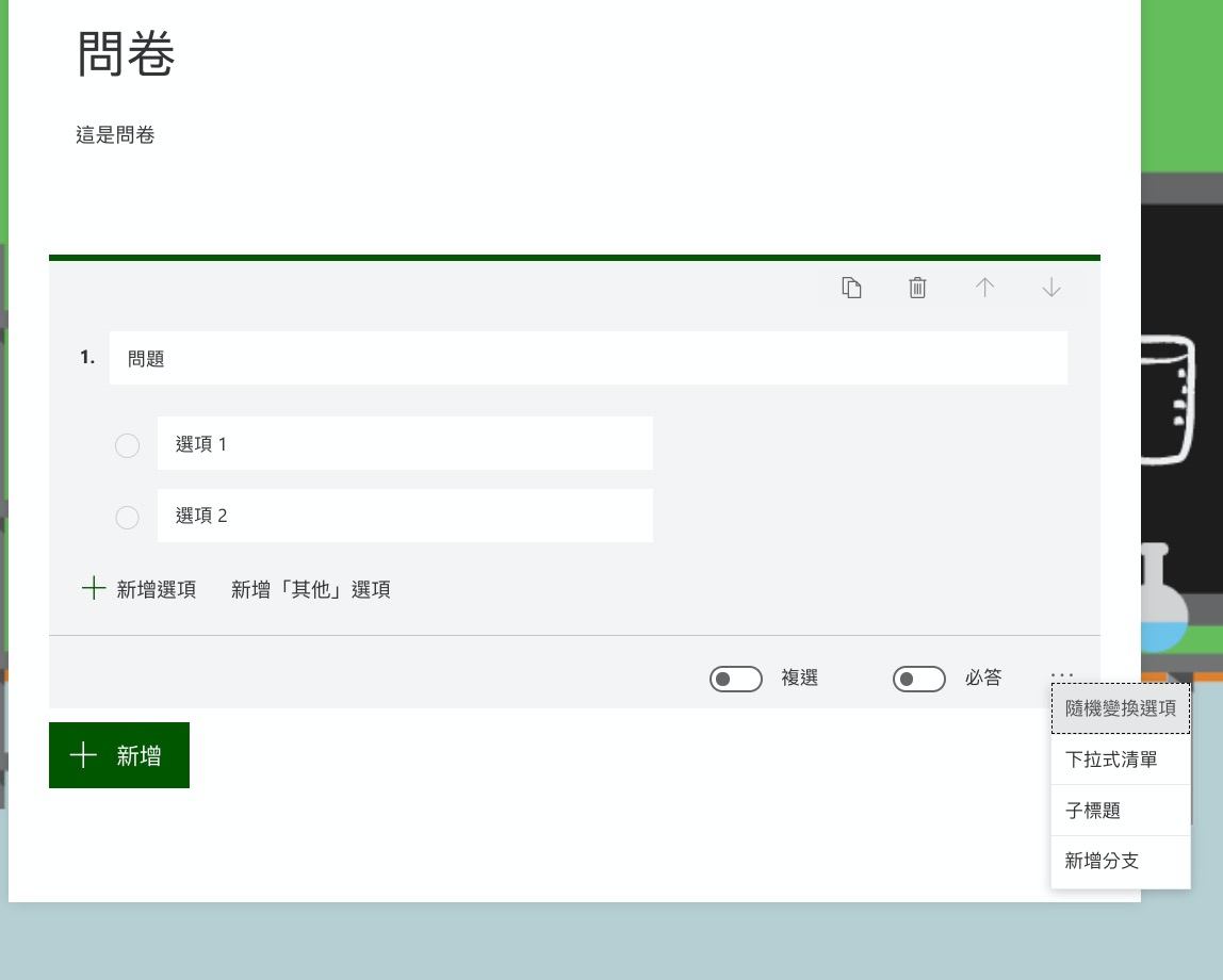 一般的問題,就是選項的方式來做設定,右下角可以選擇隨機選項順序或者子標題等設定。