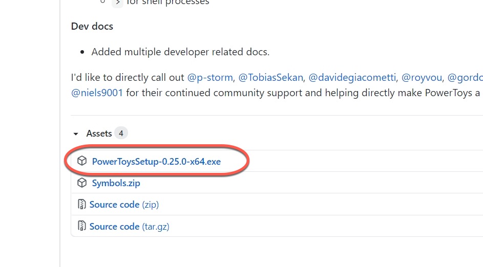 進入下載頁後直接看最新版號直接下載「PowerToysSetup」這個檔案,然後進行安裝。