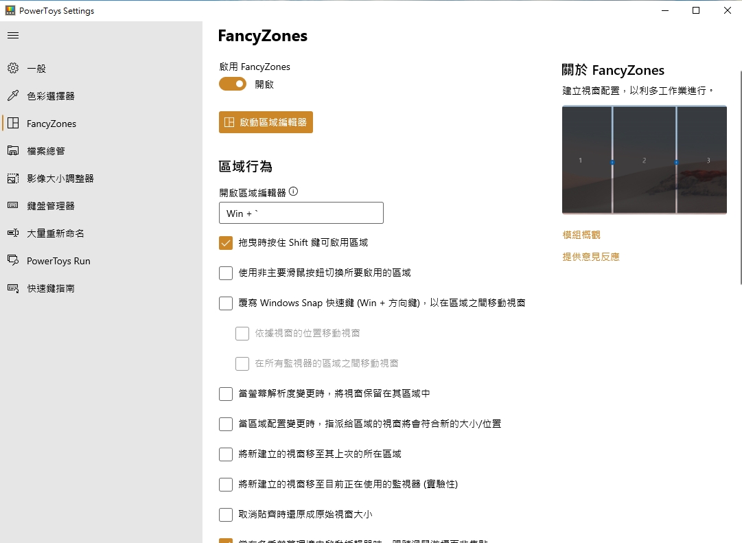 FancyZones 之前就有的功能,主要可以讓你更速的調整視窗排列,超實用。