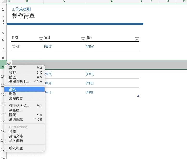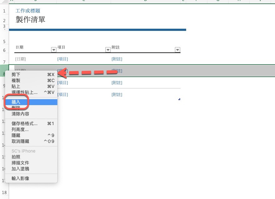 大多數人的做法,都是像這樣,選擇要插入的這一行後,右鍵按插入。