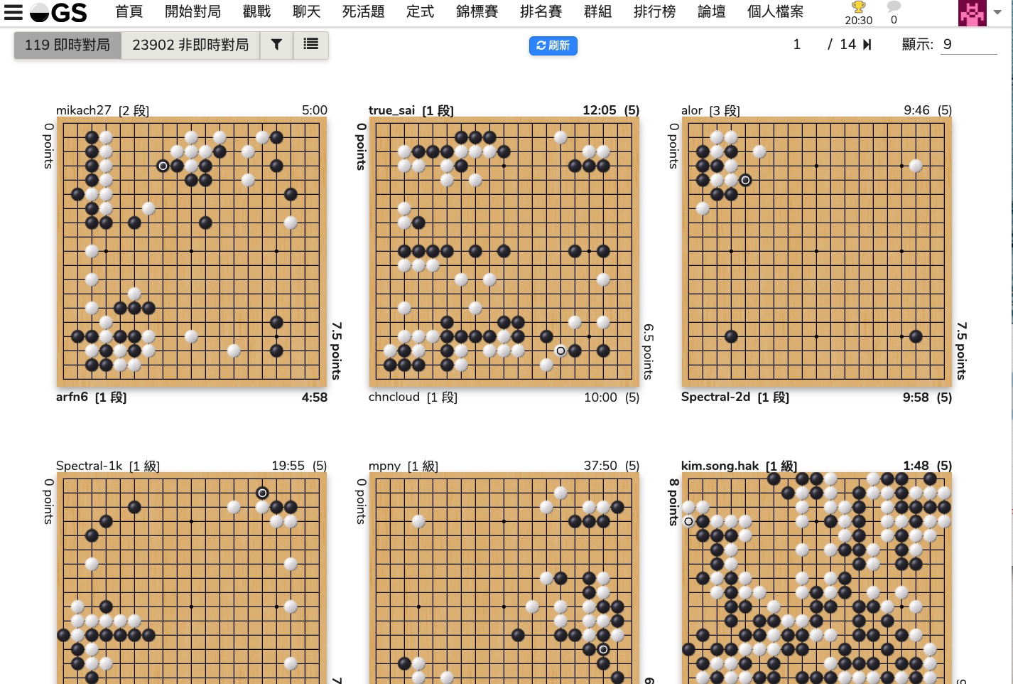 網站:https://online-go.com/在不註冊登入的情況下,除了不能對弈外,其他功能大至上都可以用的,所以如果你只是想觀戰學習的話,只要直接點擊對弈中的棋局就可以觀戰。