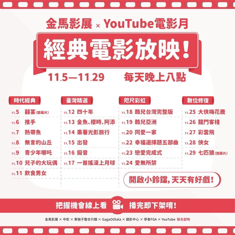 文化部與 Google 合作舉辦「金馬影展 × YouTube 電影月」