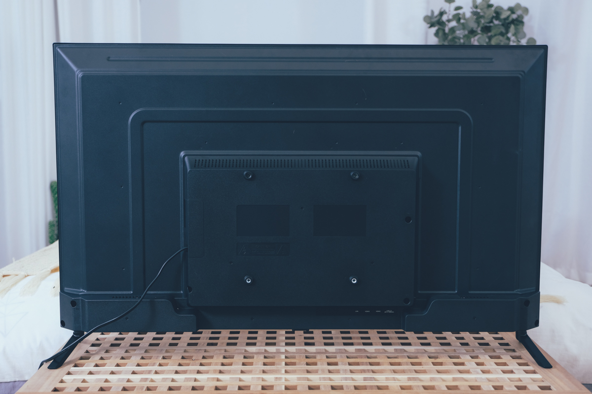 realme 智慧連網顯示器不論是 32 或 43 吋目前都是黑色,如果你想要壁掛的話,也可以看到背面也設計有壁掛的螺絲孔,只要額外購入壁掛架就可以安裝在牆上,可以更加節省空間佔用。