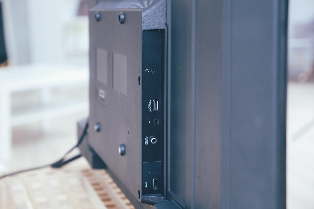 在 I/O 的部份也給的非常完整,在下方有一組 LAN Port(支援 Wi-Fi 所以想要無線或有線連網路都可以)、二組 HDMI 以及一組 USB,USB 可供電 5v/0.5A,以這樣的電量足以支援大多數的電視盒或小設備,不過已經有內建 Android TV 系統,我想也應該也可以把那些雜七雜八雜九雜十的 Android 電視盒都丟了吧。