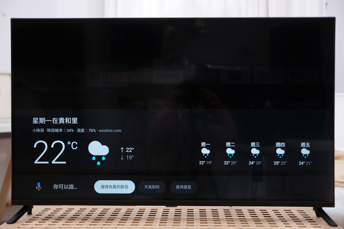 遙控器的部份在下方配有 Netflix、YouTube、Prime Video 以及 Google 語音的快捷鍵,光是 Netflix 跟 YouTube 這二個就是阿湯本人最常用的影音 APP 就超方便,更不用說搜尋還可以用語音,不再像以往傳統的遙控器輸入那麼累人了。