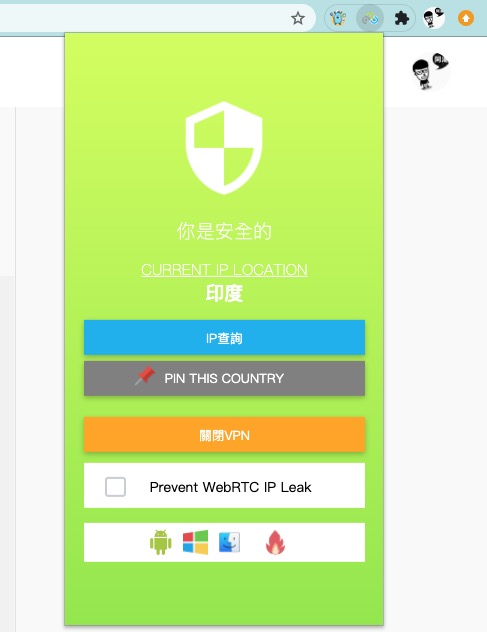 然後我們就按下印度的 VPN 連線吧。