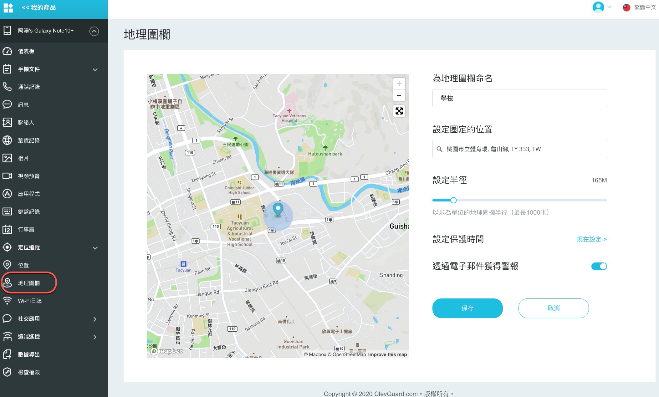 另外還有一個特別的功能叫做「地理圍欄」,這個主要功用是監控對方是否離開了指定區域,我們往下來看。
