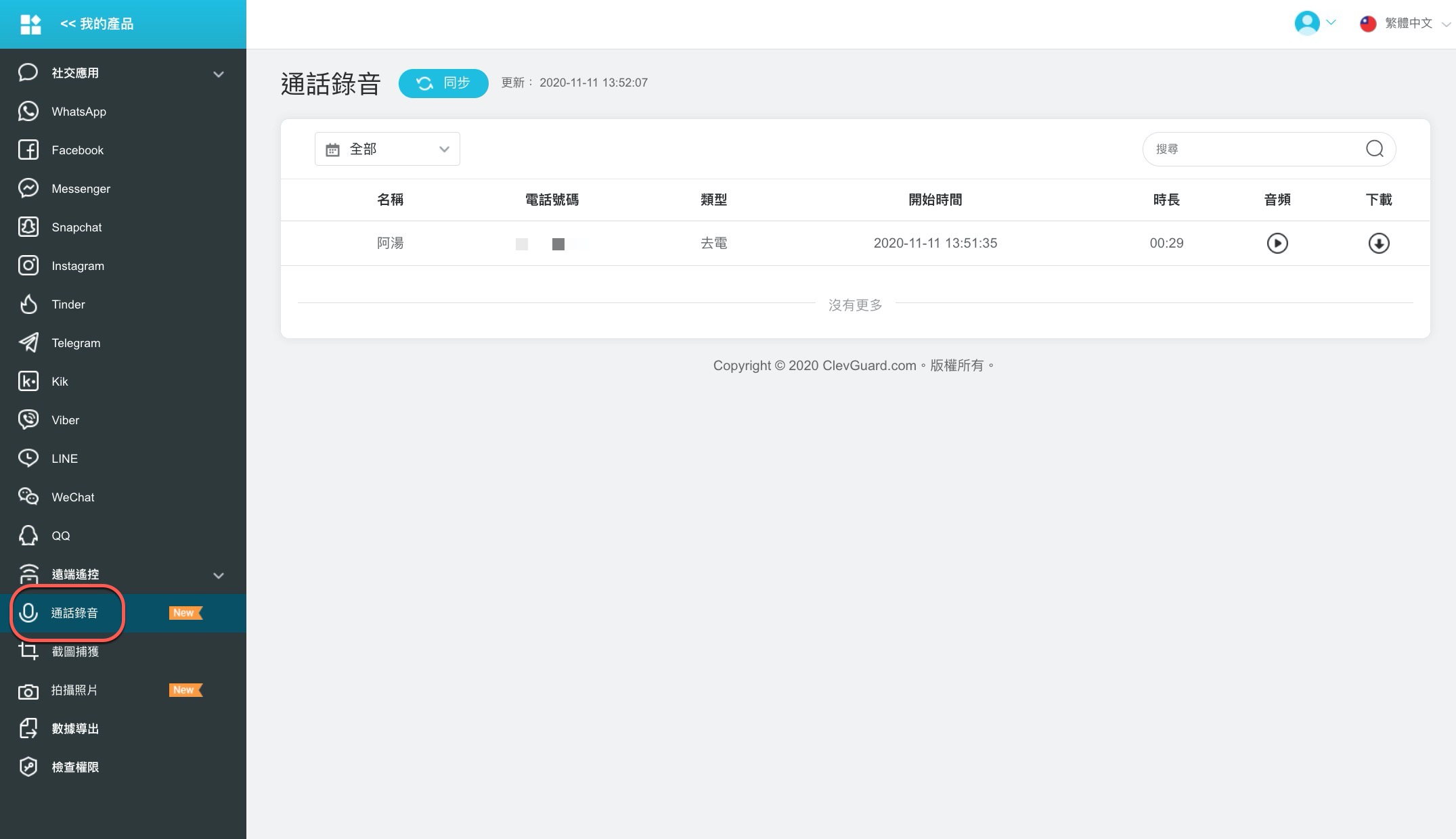 最後一個想介紹的功能就是通話錄音,每一通來電都會進行錄音,而且當你結束通話後會立即上傳到後台,這時就可以聽一下每通電話的內容,是說如果用這 APP 在自己身上的話,很多人都會需要用到通話錄音功能,對於需要記錄下來的人來說,這等於是每通自動錄音還可以自動上傳到後台,隨時方便聽內容或下載,其實單就使用這功能,似乎也是相當不錯的啊。
