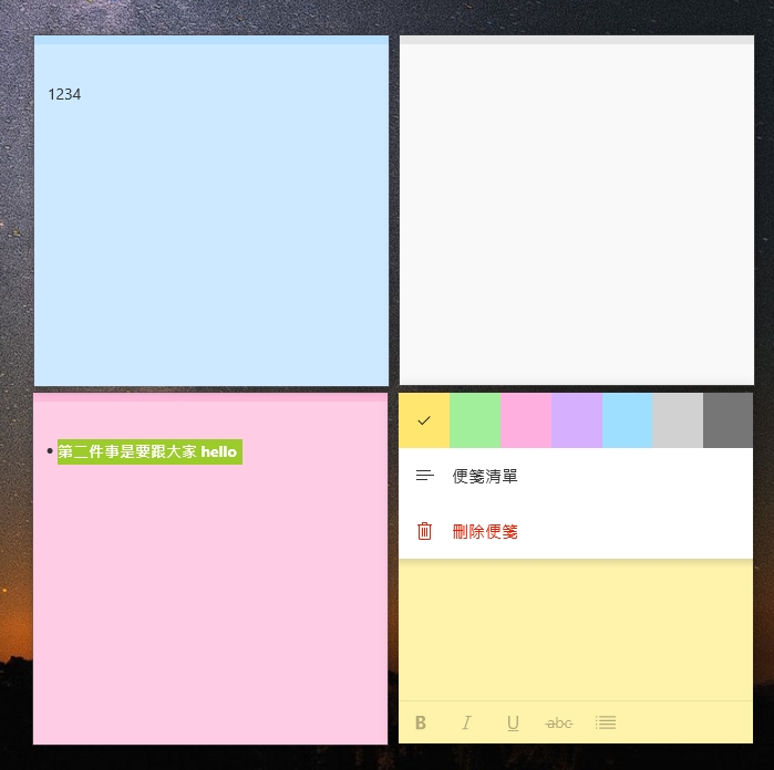 然後就可以開始建立你桌面的便利貼了,相當方便的一個功能,為什麼微軟要藏起來?