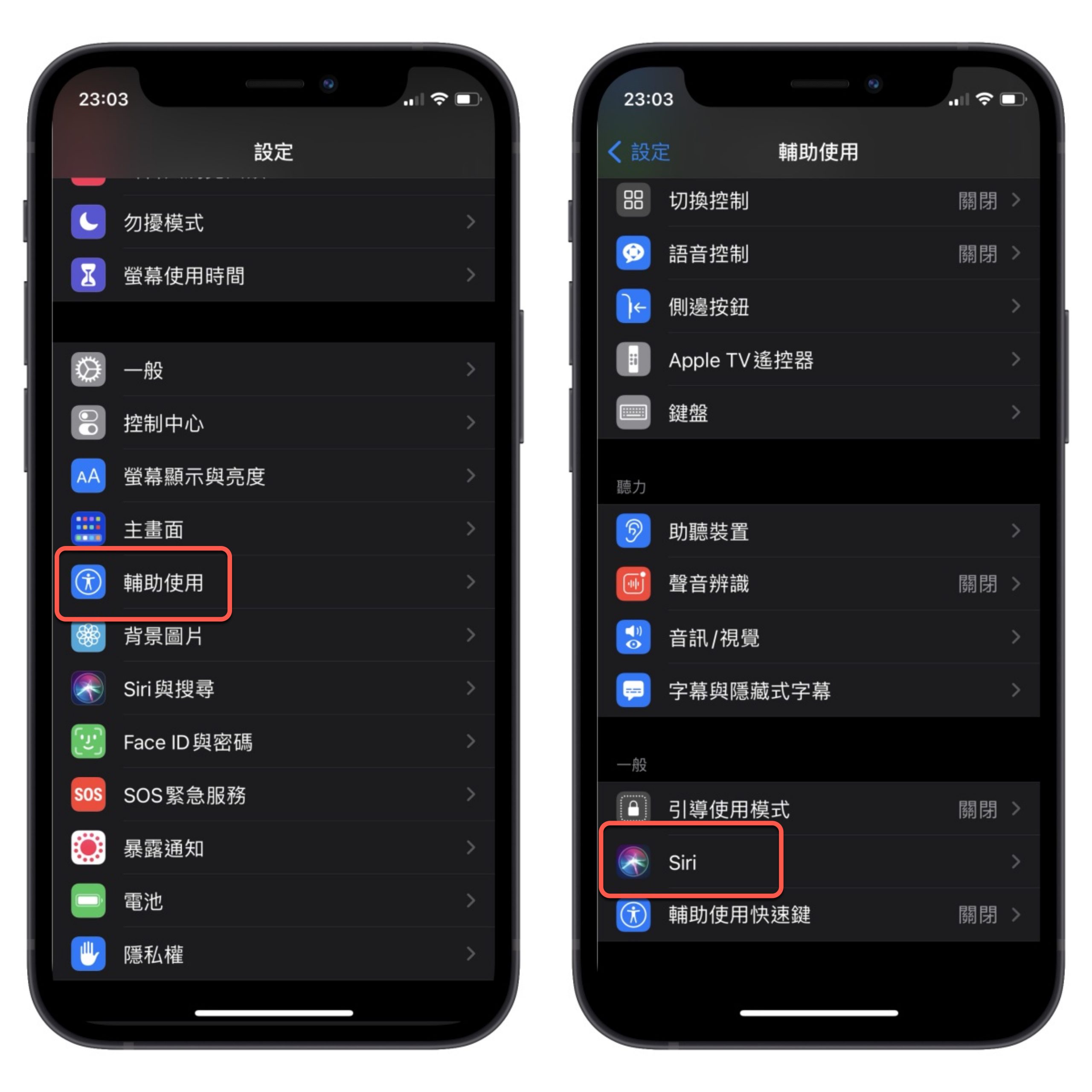 如果你想要回到之前那樣有聲有字的 Siri,且不會在你目前畫面上顯示的話,可以這樣修改,首先進到設定 > 一般 > 輔助使用 > Siri。