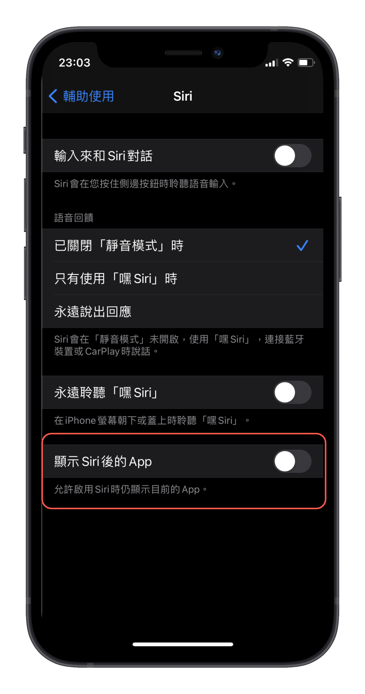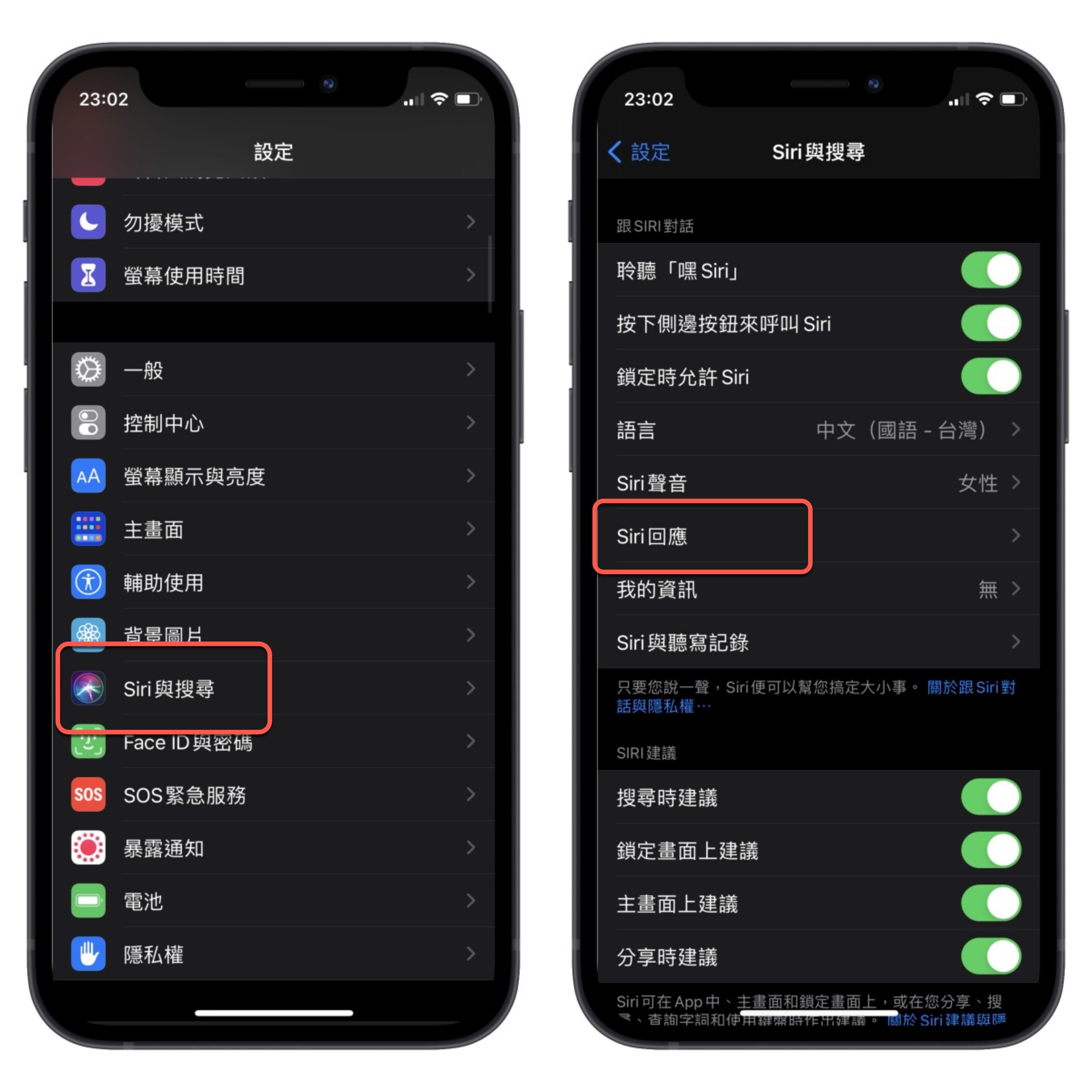 再來再回到設定 > Siri 與搜尋 > Siri 回應。