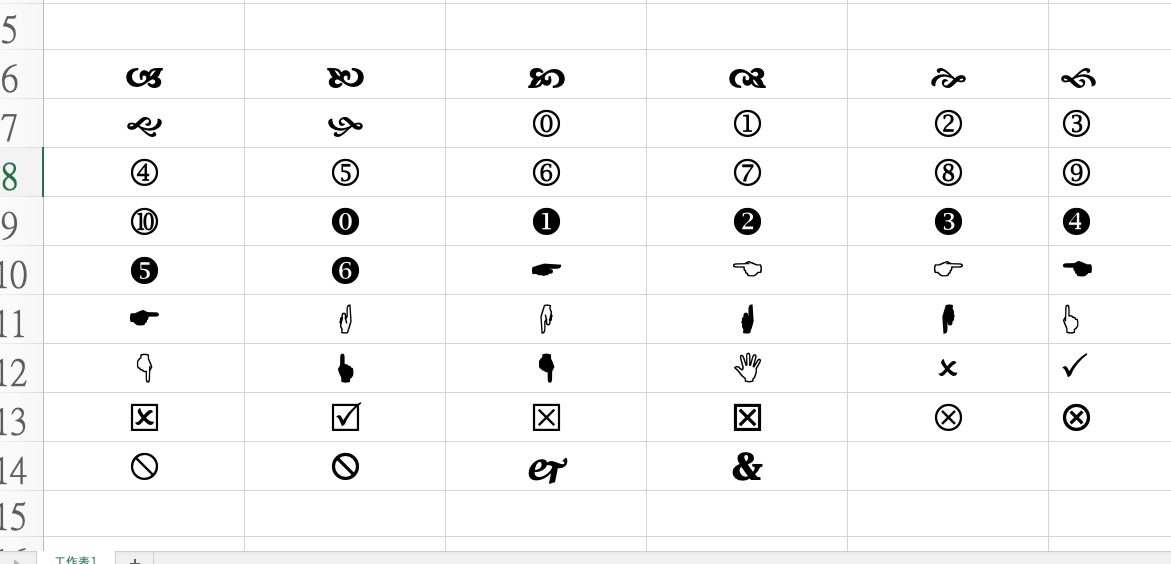 其實 Windings 2 字型都是符號,大家可以分別輸入小寫跟大寫的英文(a-z、A-Z)試試,還有禁止符號,圓型框的打叉,跟手指或有圓框的數字等,都是相當實用的。