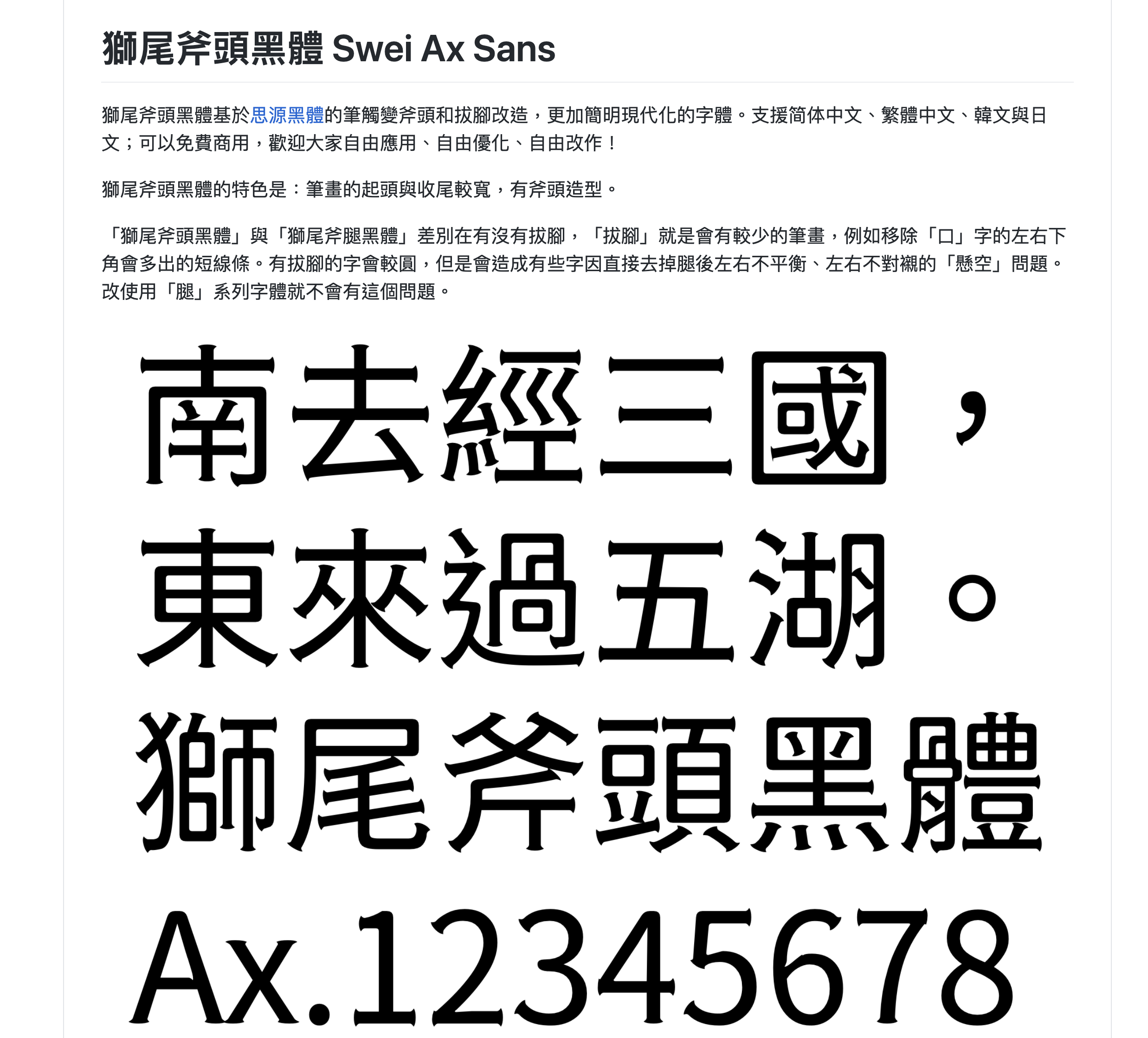 基於思源黑體所改造的「獅尾系列」繁體中文字型