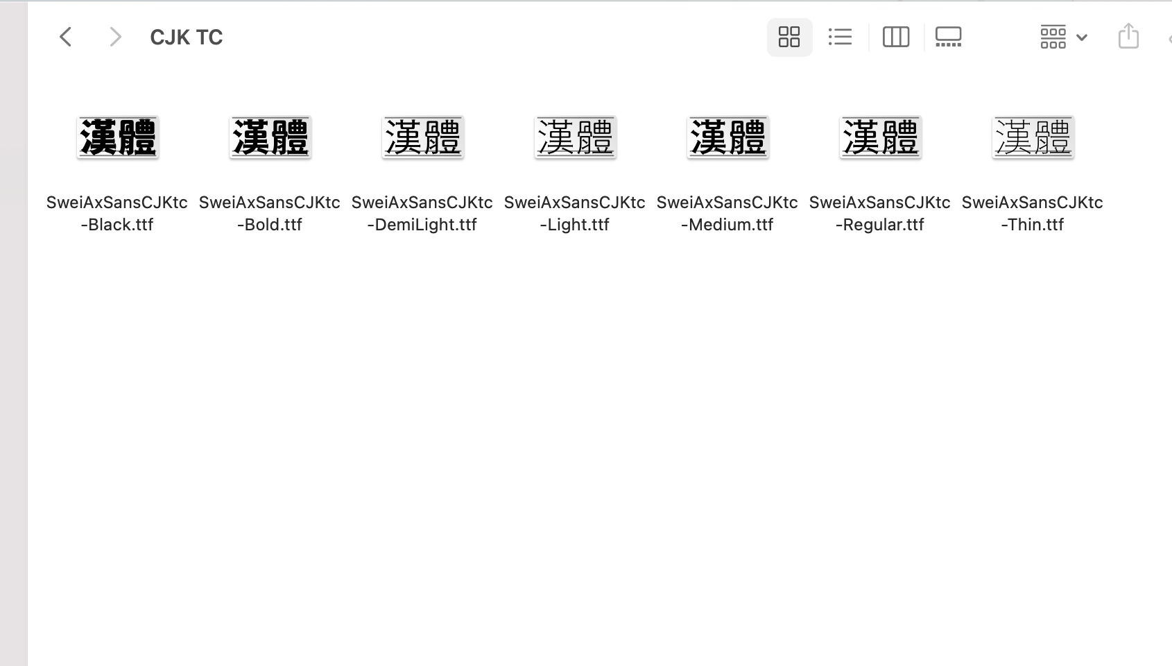 其中字型主要在 CJK JP、SC 及 TC 這三個資料夾也就是分別是日文、簡中及繁中字體,再依需求安裝字型即可,大家快去挖看看有沒有想要用的字體吧。