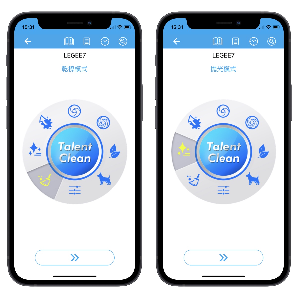 依照步驟設定好 LEGEE7 後,就可以進入開始選擇模式清潔。