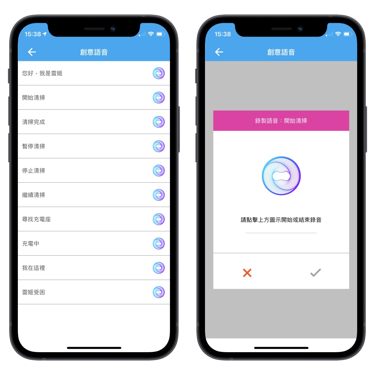 給大家展示一下幾個我錄製的內容,影片裡的音檔分別是針對開始清掃、暫停清掃、停止清掃、尋找充電座、雷姬受困、充電中。