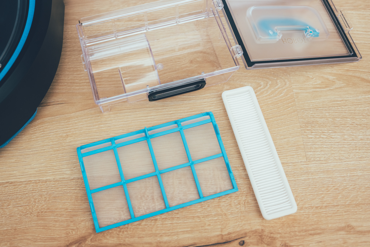 這應該是我第一次看到掃拖機器人的集塵盒配置二層濾網,一般都是一層 HEPA 濾網在尾端就收工了,LEGEE7 則是分成了二層,分別是一級濾網以及高效能濾網,最大優點就是可以更加減少髒汙的二次汙染,對於第二層的高效能濾網使用壽命也可以拉長,而整個集塵盒加二個濾網都是可以重覆水洗再使用的。