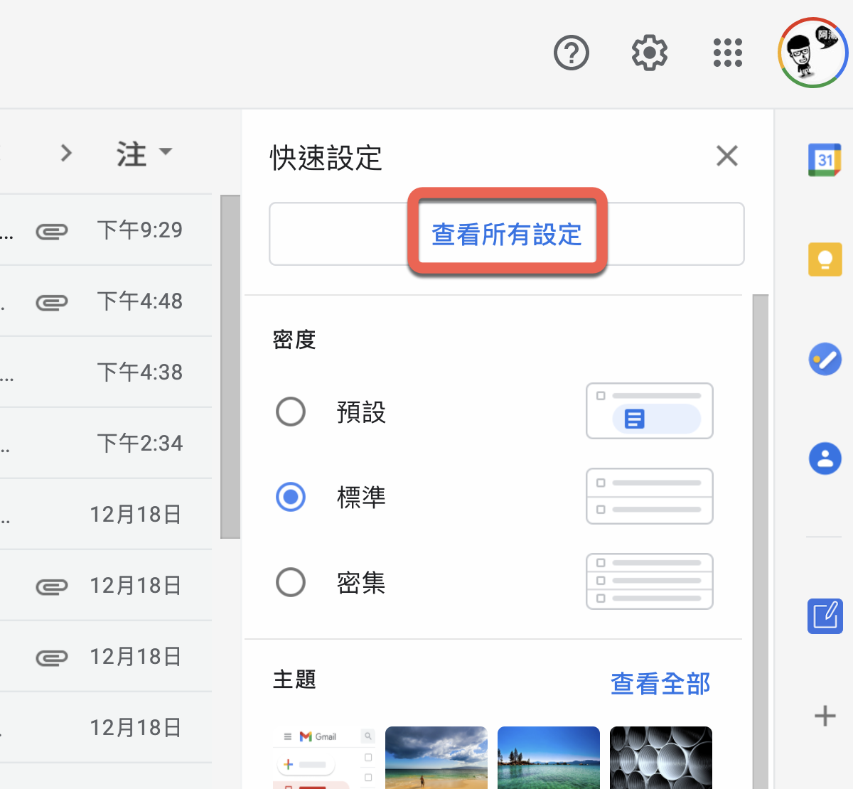 首先是點擊右上角的齒輪後再點擊查看所有設定。