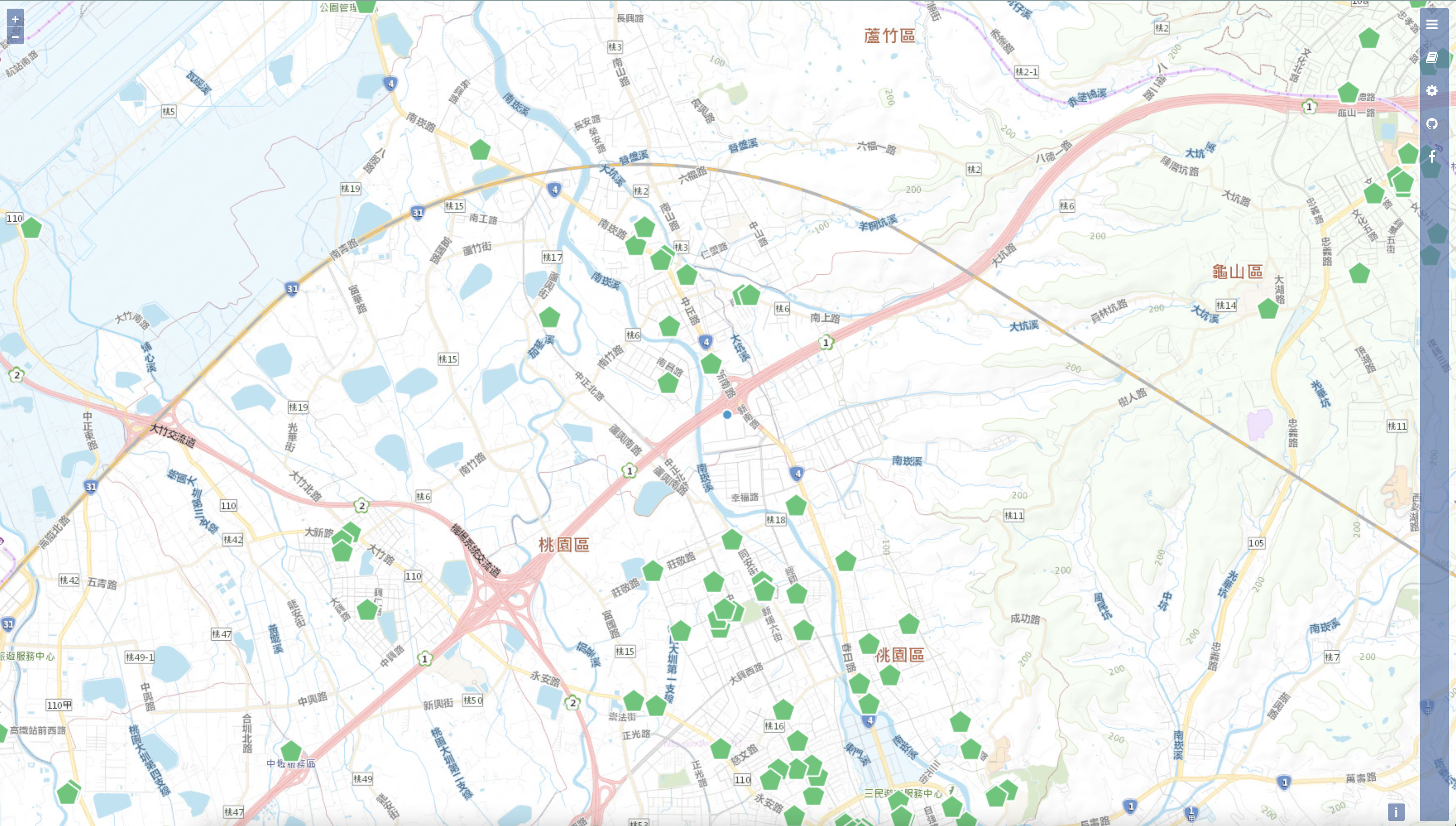 網站:https://kiang.github.io/taiwanpork/進入網站後就可以看到地圖上有很多綠色的五角形,每個點都是代表有取得標章的餐廳,你可以直接點擊位置查看,或者直接搜尋你想要去吃的餐廳名稱。