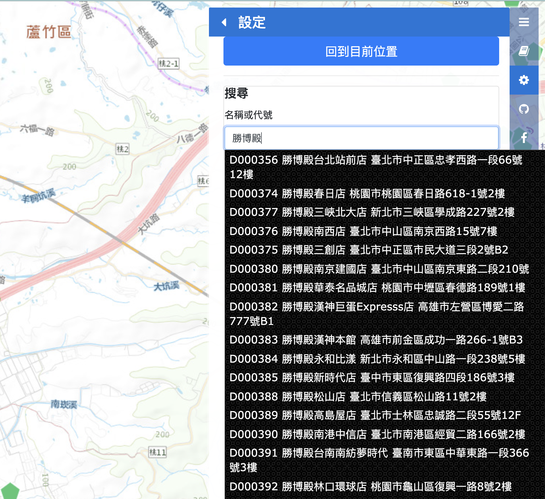 比如像很有名的豬排店勝博殿,你可以點擊右邊的設定,然後直接搜尋餐廳名稱,只要有出現就代表有申請標章,可以安心的前往。
