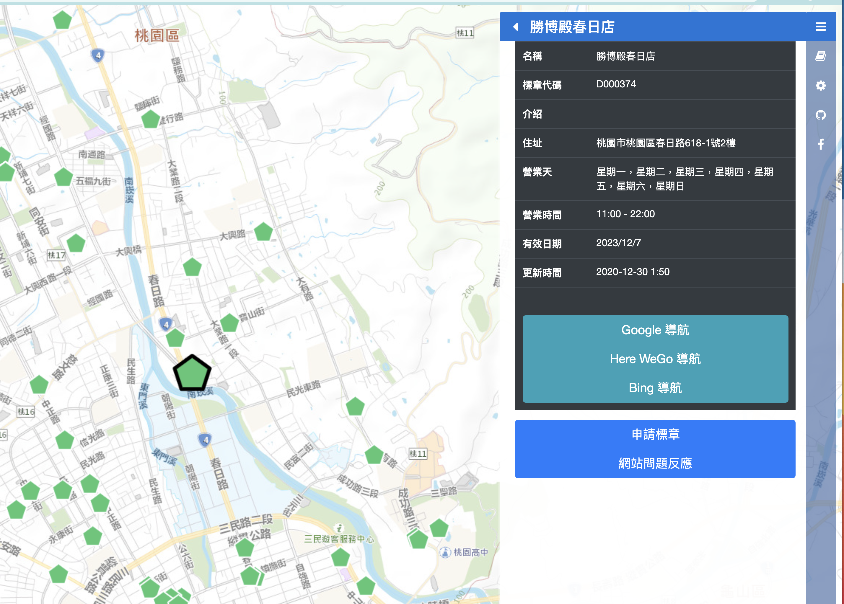 點擊後也都有店家的相關資訊,不過這些就沒那麼重要了,反正 Google 地圖上都有,重點是確認有標章就可以了。