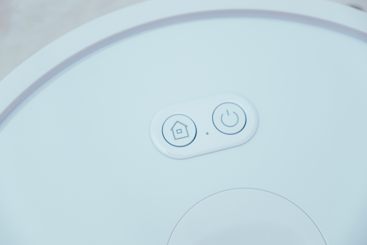 在上方主要有二個按鍵,平常開機下,按下電源鍵會直接啟動機器人,按下 Home 鍵則是返回充電,或者完全透過 APP 操作也是可以的(畢竟很多人都藏在沙發底下)。