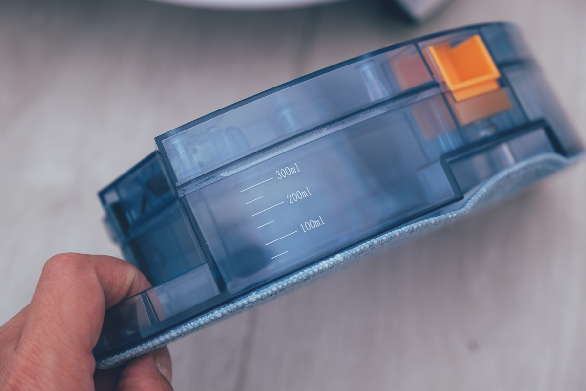 雖然是拖地用的水箱,不過為了大家的使用習慣,可能有時覺得家裡沒那麼髒只是一些小灰塵,想直接使用拖地的話也沒關係,內置有集塵室空間,在邊拖地的期間,仍然會將一些灰塵清掃起來,不至於全部都堆積在拖布上,所以雖然看似拖地的水箱是單獨的,但其實同樣是二用,只是清掃灰塵的能力不會像單純掃地的集塵盒來的厲害。