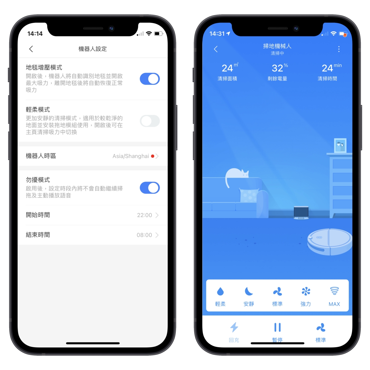 在 APP 裡還有更多設定,像是定時清掃、遙控模式、查看清掃記錄等。
