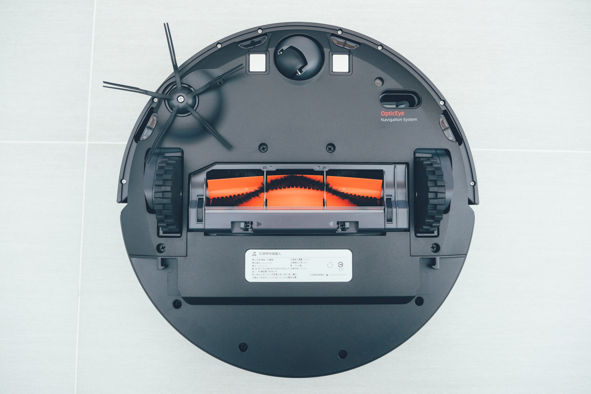 在機身的底部也搭配了雙光學 Laser 及 Led 運動追蹤傳感器,以高頻率拍攝地面,再進行前後圖片的比對分析,就可以清楚的知道機器人走了多遠。