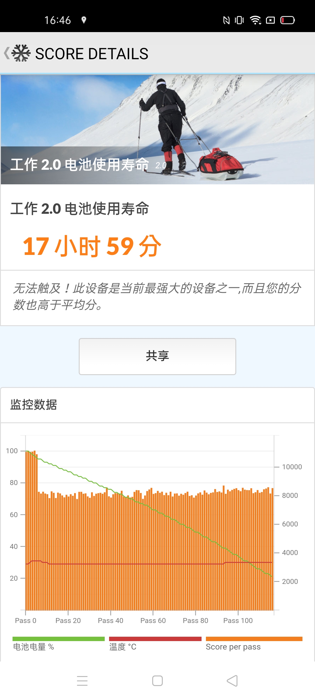 以續航測試來說,透過 PCMark 測得 17 小時 59 分,基本上就當做是 18 小時看待好了,在正常使用下,一天實際拿起手機的時間可能才 3~4 小時,多一點的大概 5~8 小時,除非是用於看影片、玩遊戲,可能會耗電的更快一些,否則二天充一次電應該是就相當夠用了。