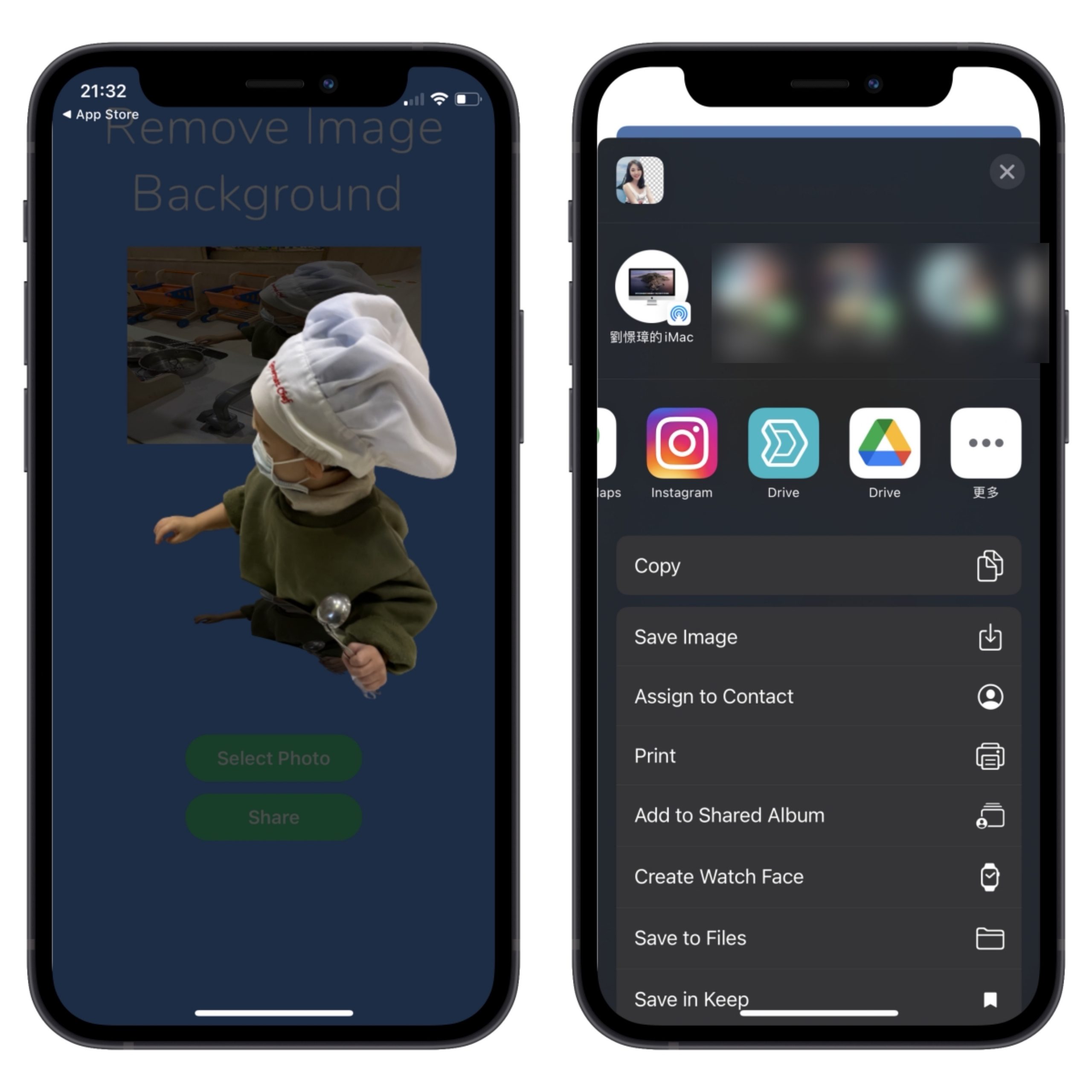 點擊 Share 後就可以儲存到相簿(Save Image)。
