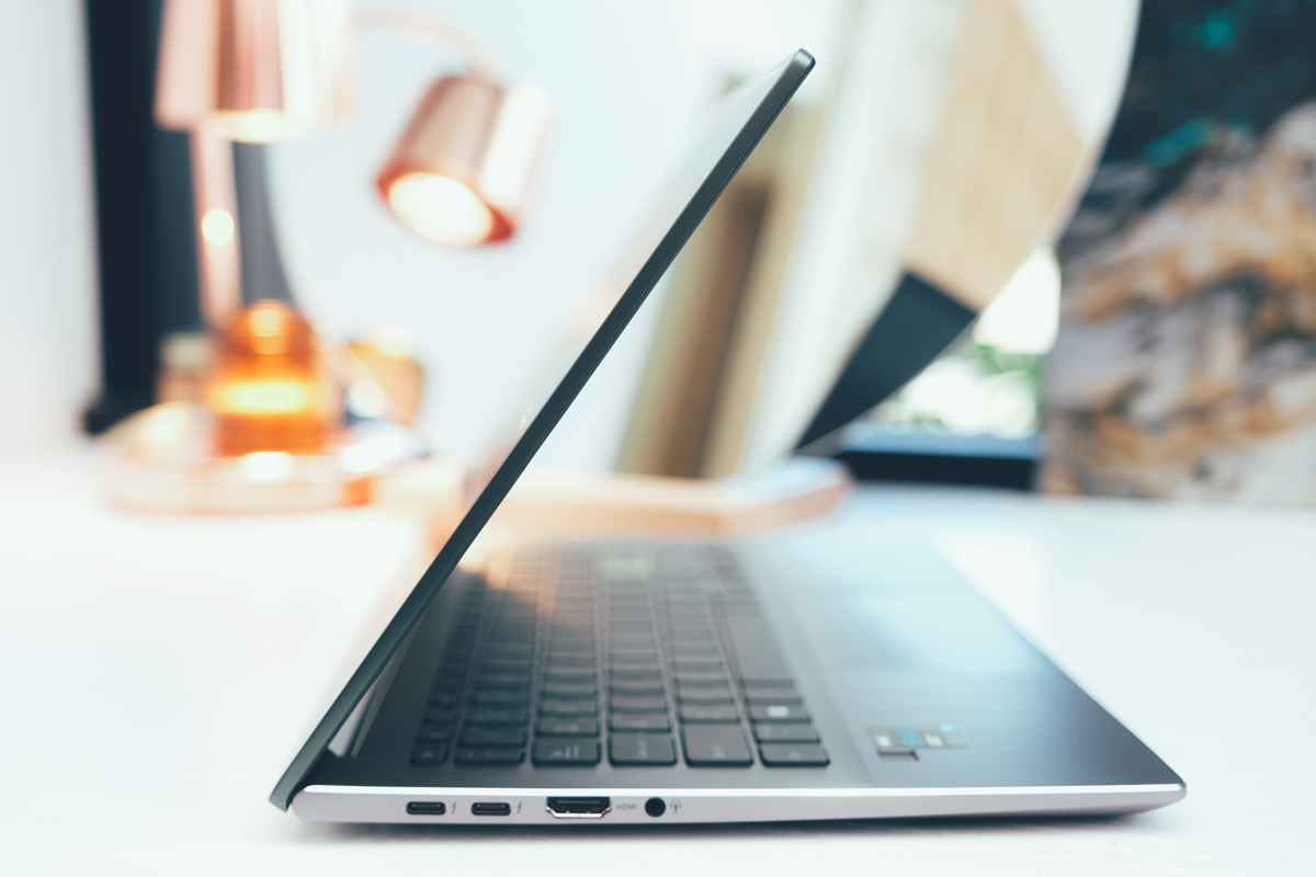 從側邊來看也相當的纖薄,總厚度僅 15.9mm,重量也只有 1.3 KG,加上極窄邊框的 14 吋大小,輕鬆就能放進各種包包帶出門。