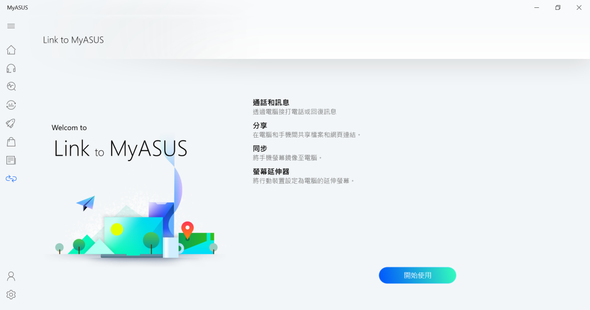 其它像是與手機之間連結非常實用的 Link to MyASUS,只要在手機安裝 APP 並啟用連接,就可以在電腦上直接打電話、回覆訊息或是分享檔案、螢幕畫面等七種應用,是相當實用的一項功能,不需要再透過第三方工具來達成。