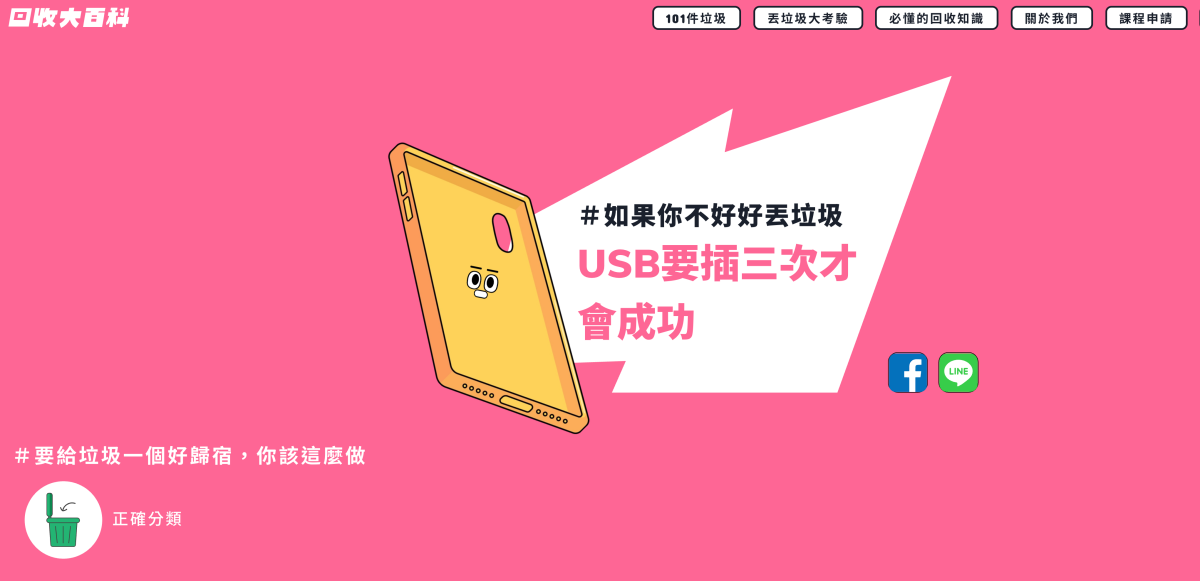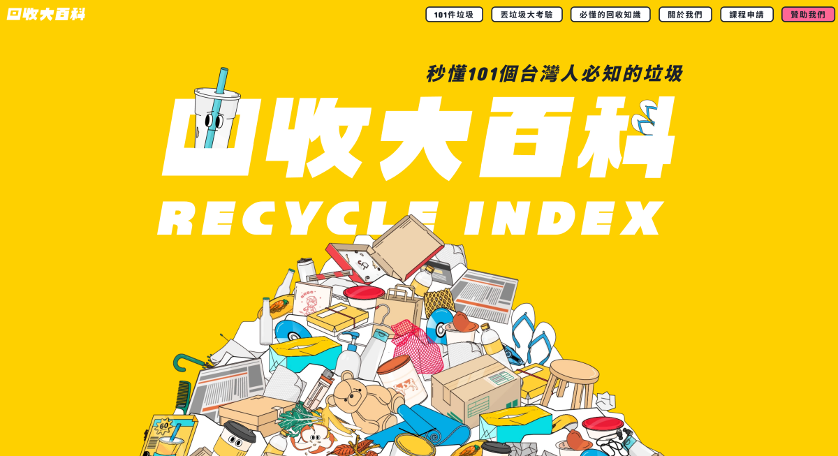 進入網站後,在右上角主要有三個選單,分別是查看 101 件垃圾的說明、分類遊戲以及回收知識。