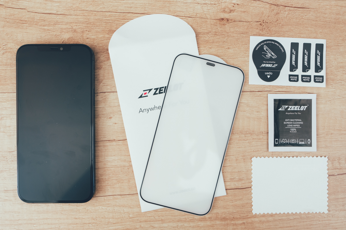 如果你住台北的話,可以直接前往有販售 Zeelot 的相關門市購買請他們幫你貼,如果你不怕自己貼的話(其實很簡單啊),也可以線上購買自己搞定,盒裝都會附有除塵貼、酒精擦拭紙以及一個擦拭布,你只要有好好的清潔手機螢幕,基本上自己貼是完全沒有難度的。