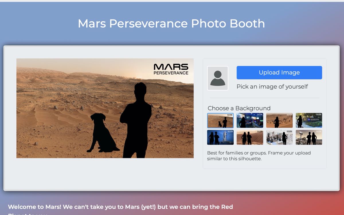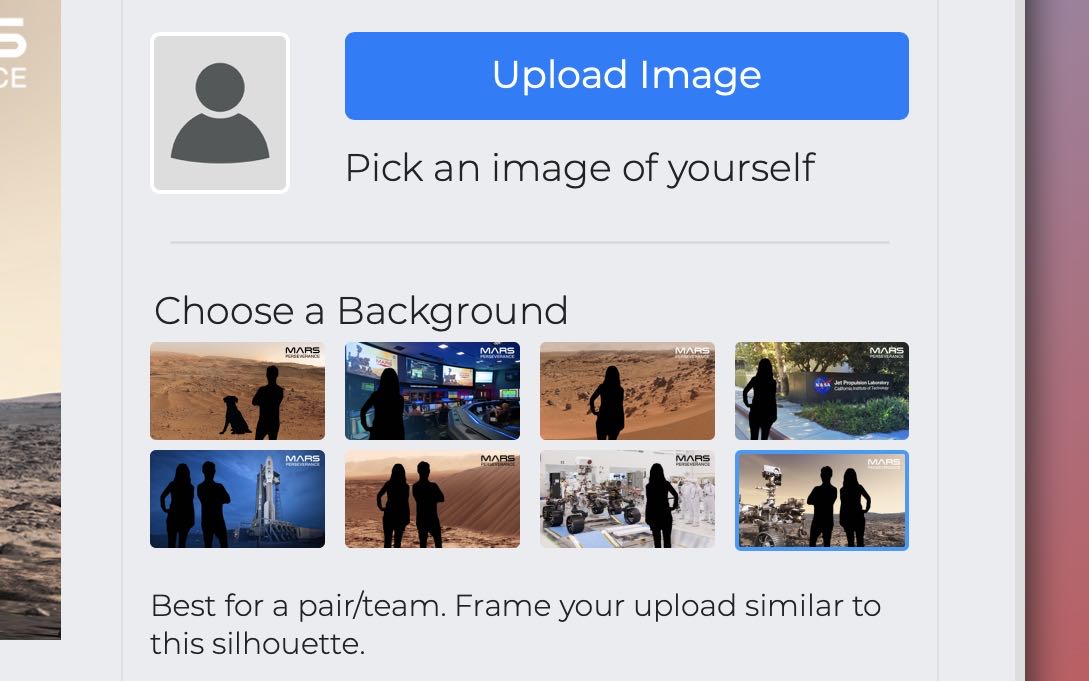 想要製作出自己的火星合成照其實很簡單,只要 3 個步驟就能完成。 Step 1. 在頁面的右側選擇「Upload Image」後挑選想要上傳的照片,系統會自動進行圖片的去背動作。