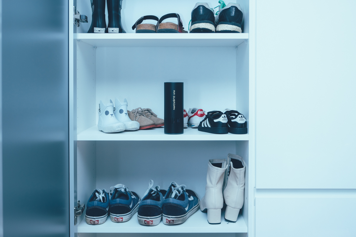 說到除菌跟除臭,我想大家第一個想到的絕對都是鞋櫃,如果你家中的鞋櫃也是設計像這樣的密閉式櫃體,那麼櫃內的潮濕不僅是助長細菌生長,也讓鞋子的臭味無法散去,阿湯先前的做法一開始都是放備長碳等物質來吸濕除臭,不過效果並沒有很好,也不太環保。