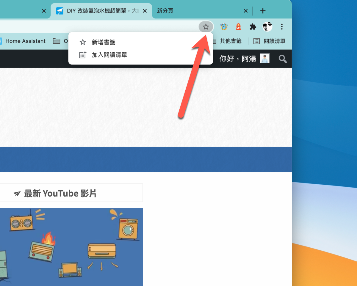 當你想要將網頁新增到閱讀清單時,就去按新增書籤的星星圖示,這邊就可以看到要新增書籤或是加入閱讀清單。
