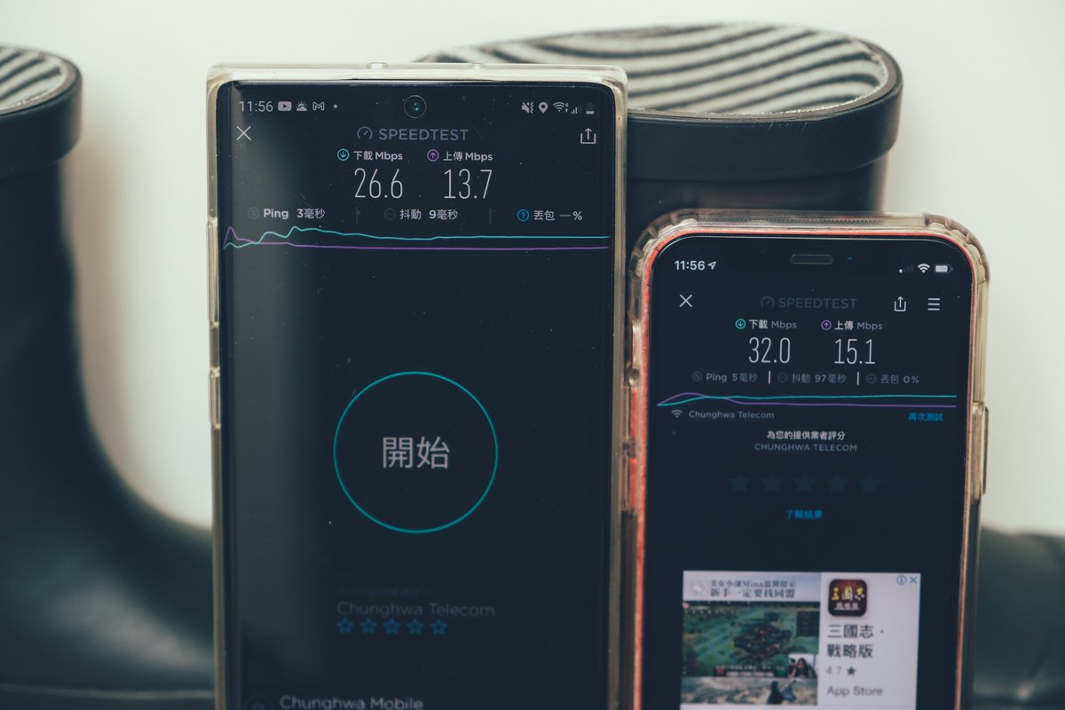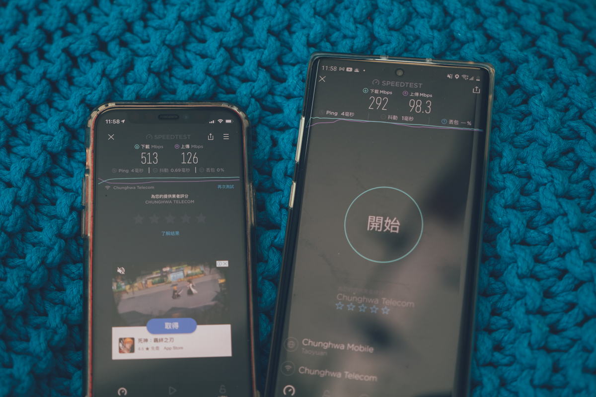 - Galaxy Note 10:下載/13.4Mbps、上傳/12.2Mbps