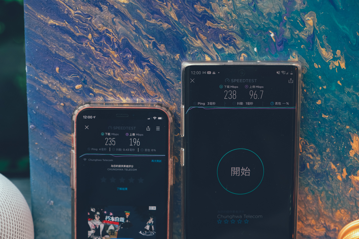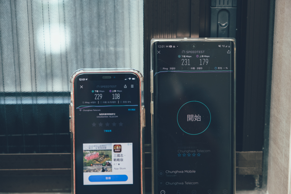 - Galaxy Note 10:下載/231Mbps、上傳/179Mbps