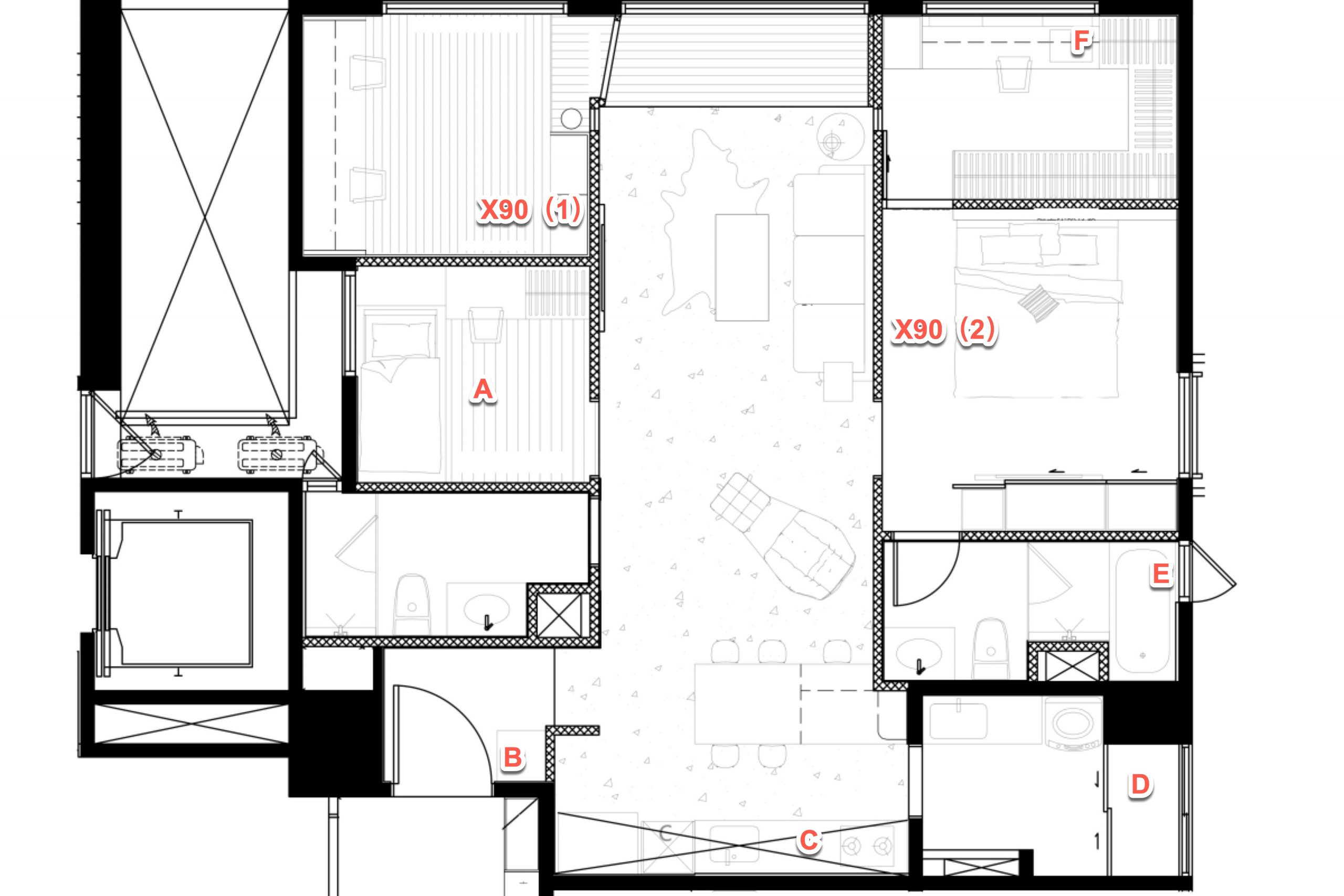 先前阿湯在測試路由器時,有不少人希望我改用 Speedtest 跑速度,想看看家中網路各角落的衰減速度做為參考,所以這次我就列出了 A ~ F 的點,然後每個點進行速度測試,Deco X90 則是分別擺放在書房(1)跟臥房(2),剛好算屋子中央連成一條,阿湯是透過「無線」的方式連接的,如果你有預設網路連接埠,也可以考慮用有線的方式連結,連線速度會更加的好。