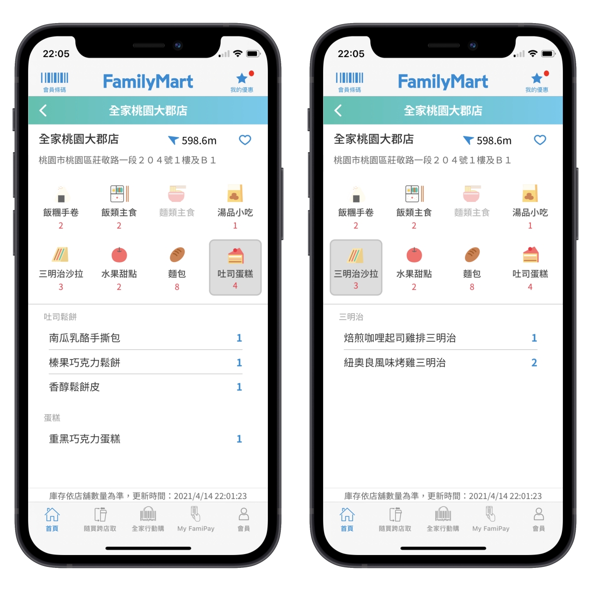 進入後,友善食光可以用列表的方式或地圖查看的方式找到附近的全家有哪些,而每間還剩下哪些東西。